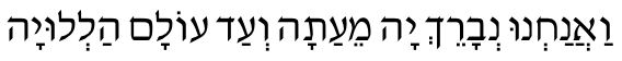 V'anachnu nevarech Yah me atah v'ad olam HalleluYah